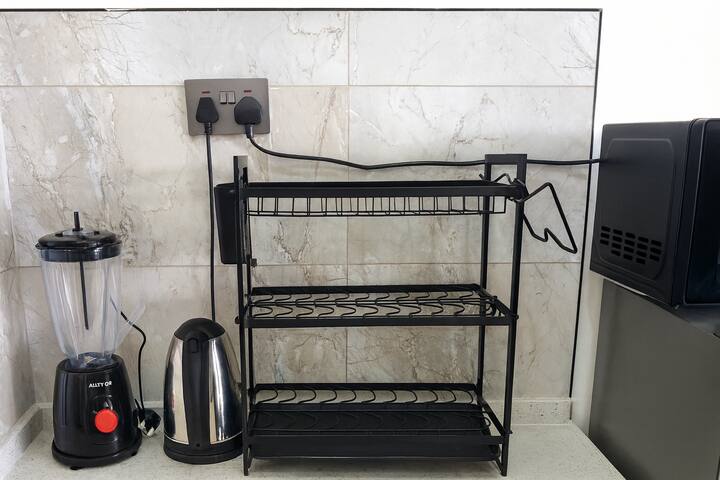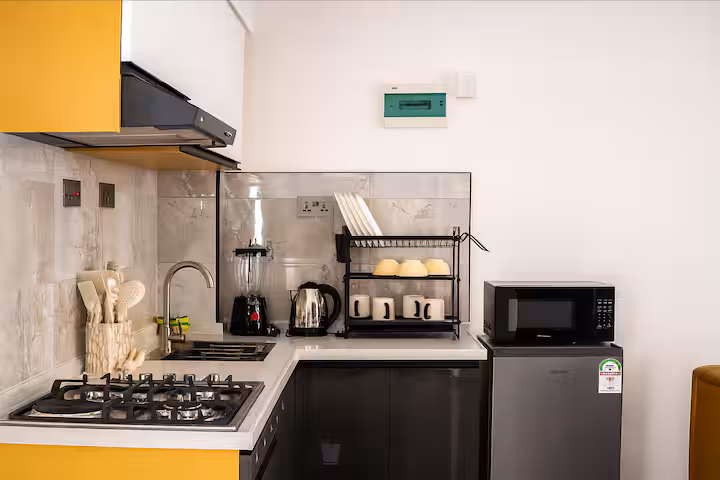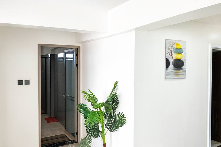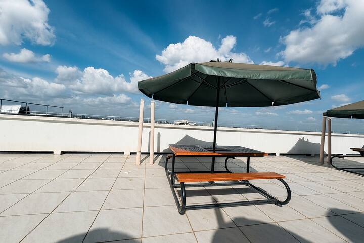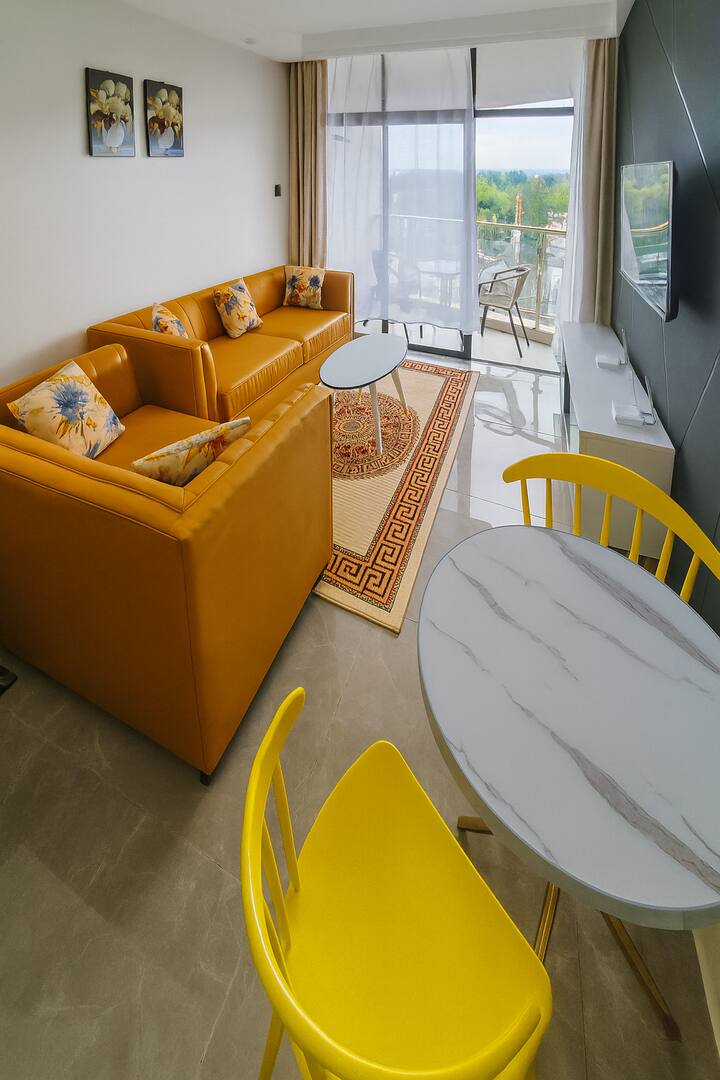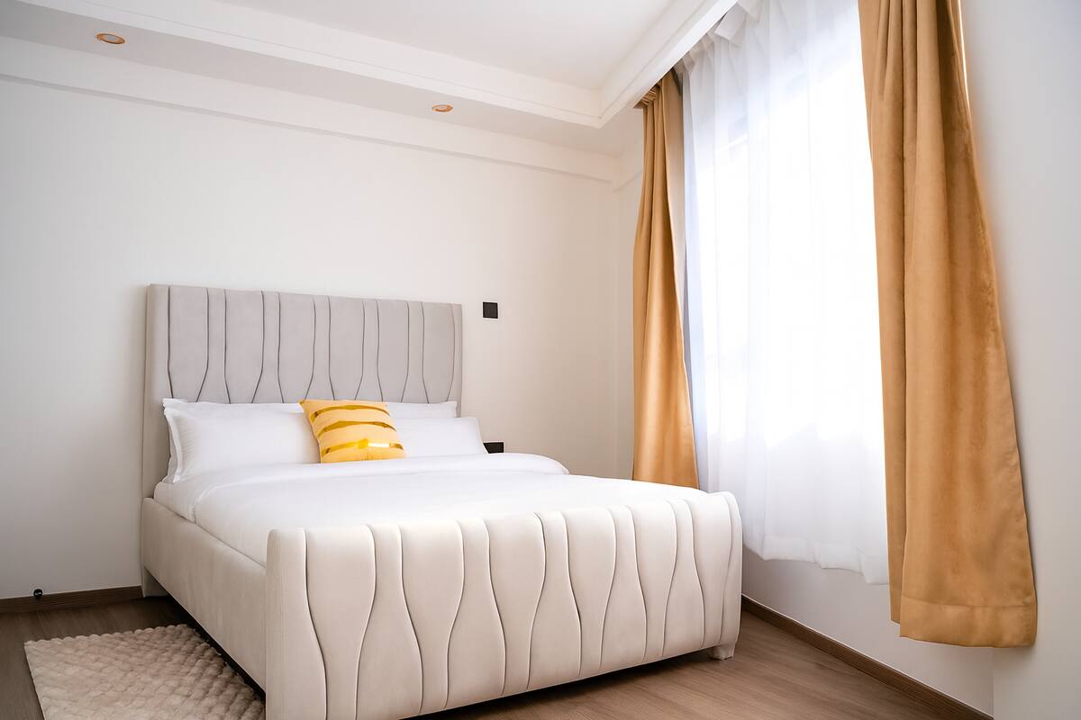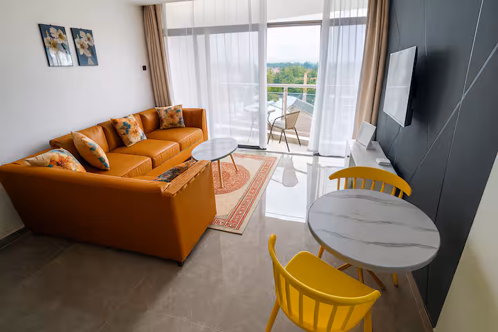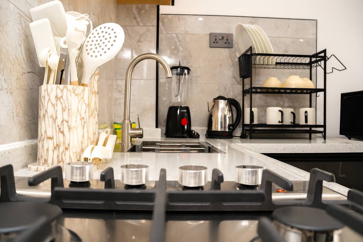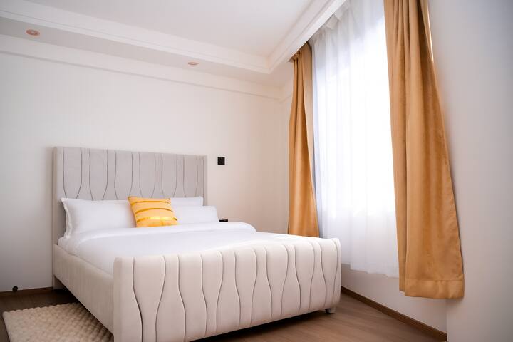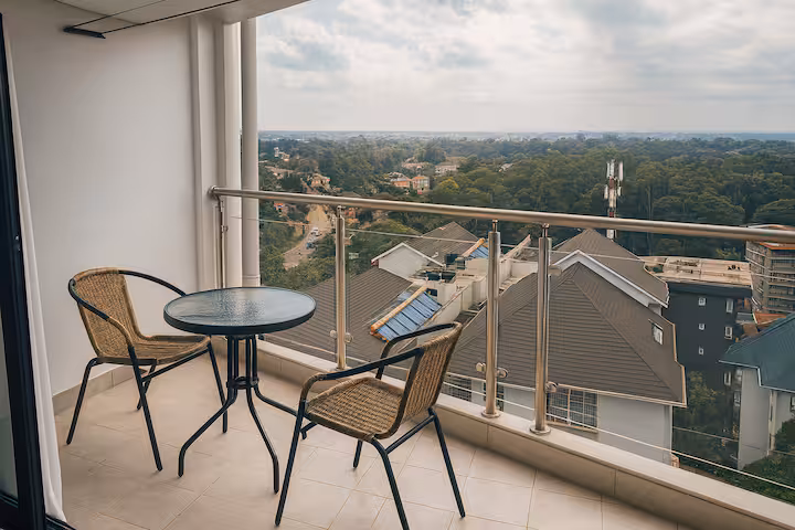 A modern 13th-floor one-bedroom with sweeping skyline views. Designed for both comfort and elegance, with a full kitchen, bright living area, Smart TV, and queen bed. Perfect for sunrise coffee, sunset wine, business, or leisure.