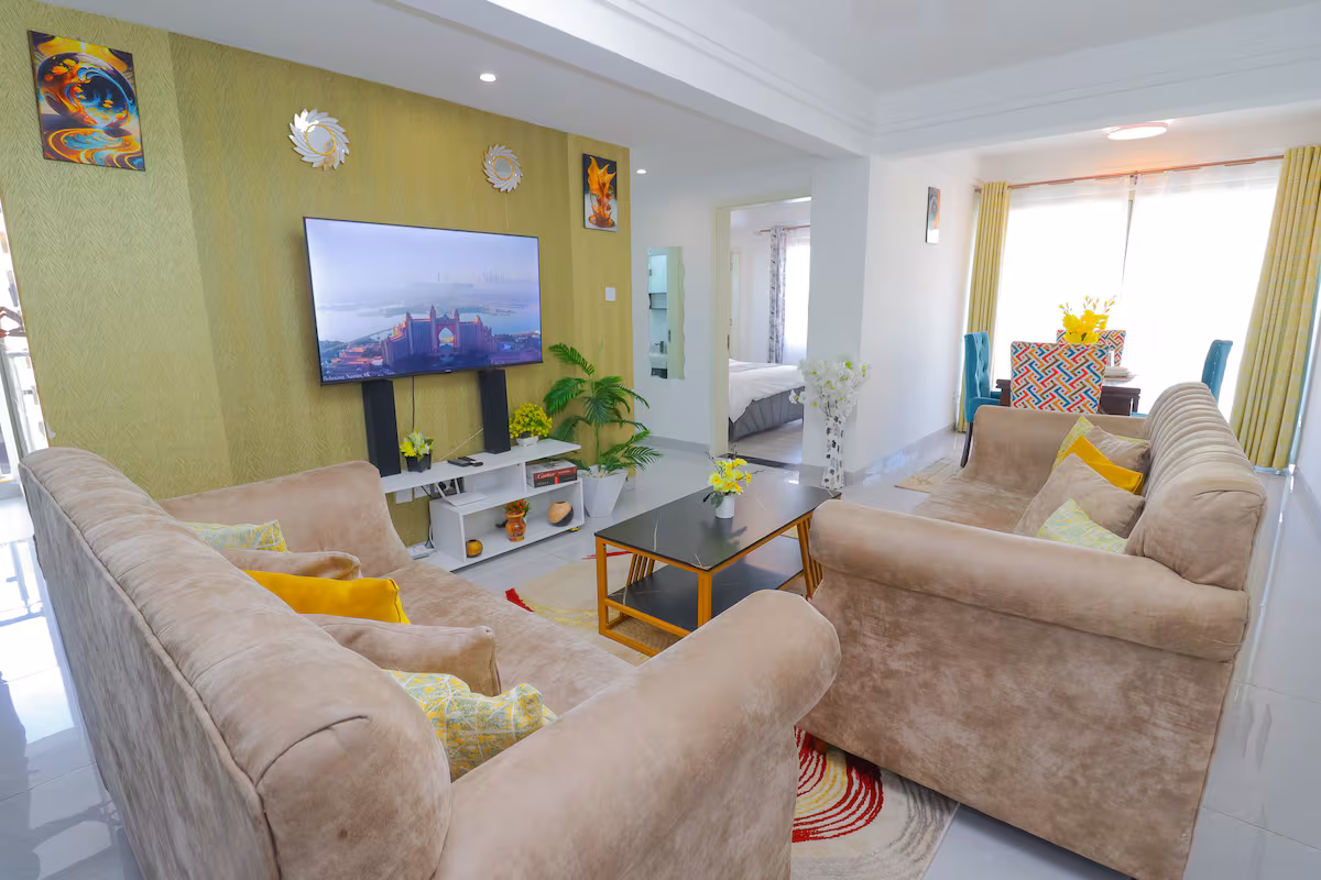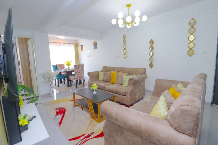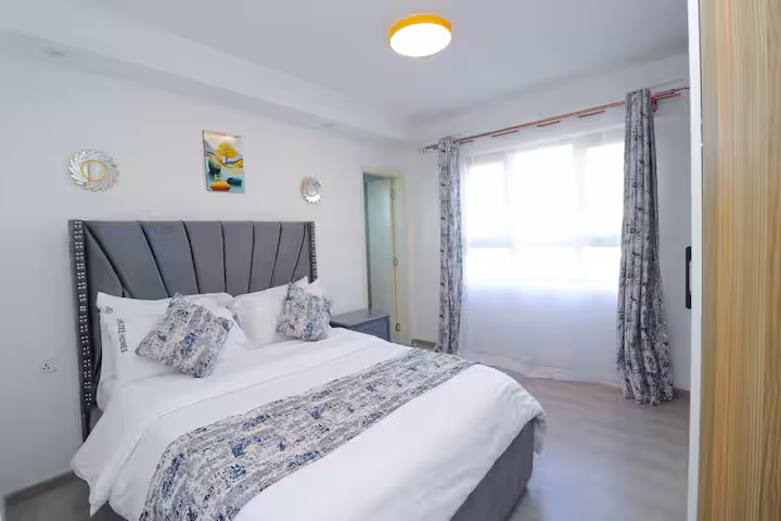 A spacious two-bedroom apartment near Yaya Center with skyline views, perfect for families or groups. Just 20 minutes from the airport and close to Nairobi National Park, the Arboretum, and major shopping & dining. With 24/7 security and a gym, it’s your ideal city retreat.